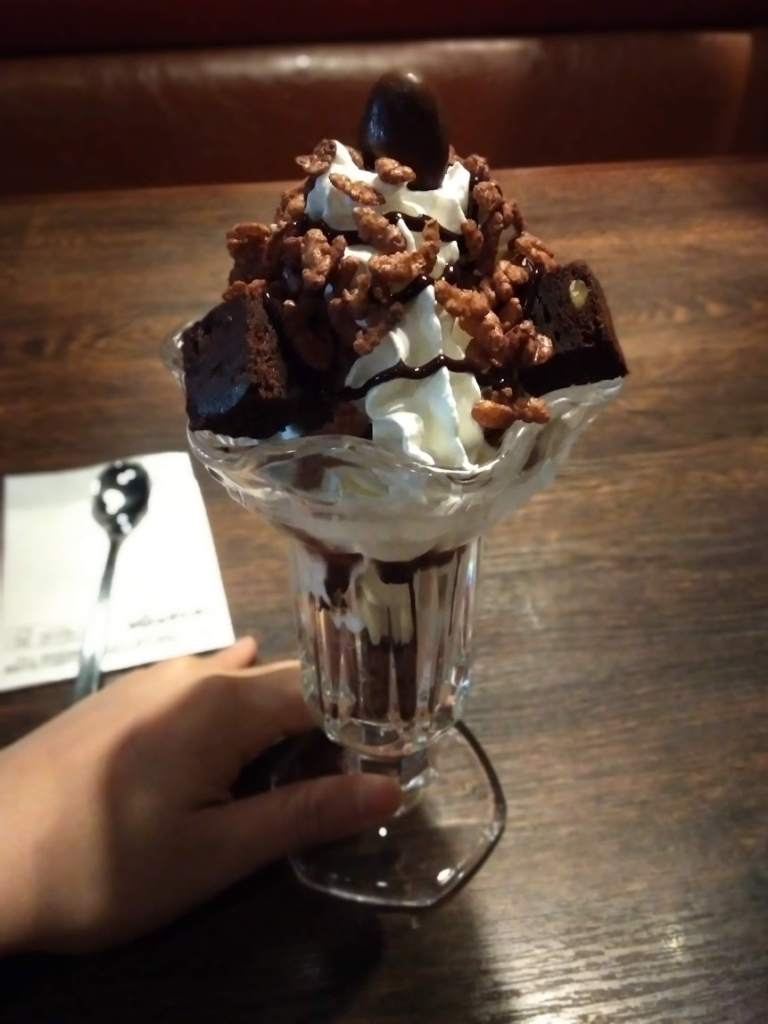 量もさることながら、お手頃価格。これがあるからデニーズがファミレスの中で1番好きといっても過言ではないです。満足感爆上がりです。ブラウニーもアイスもプリンもおいしいチョコ尽くし。上から下まで全部おいしいです。