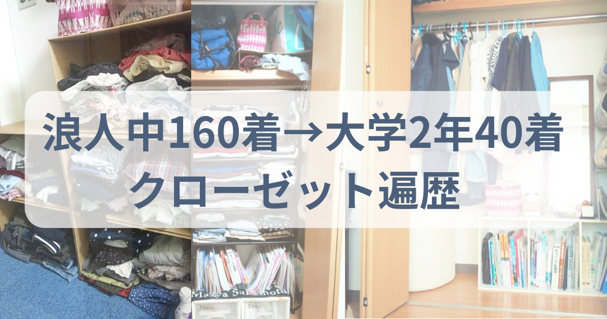 こんな人向けの記事です ✅他人のクローゼット・ワードローブを見るのが好き ✅浪人生・大学生(女子)がどんな服を持っているのか気になる ✅服を減らすとクローゼットはどうなるの?と気になる方