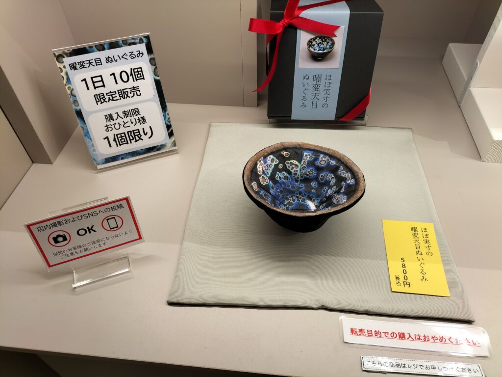 一番の目的である世界に3つしか無い国宝・曜変天目は撮影NGでした。が、ミュージアムショップの曜変天目ぬいぐるみ↓なら撮影可能です。