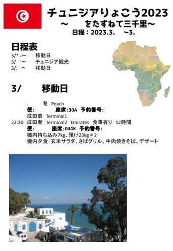1~2日目 移動日:最寄りの飛行場→成田→ドバイ→チュニジア