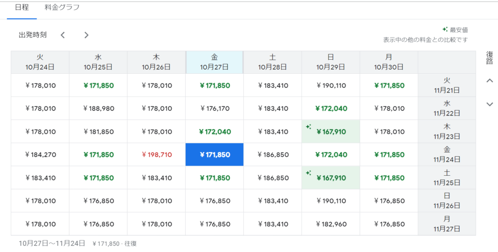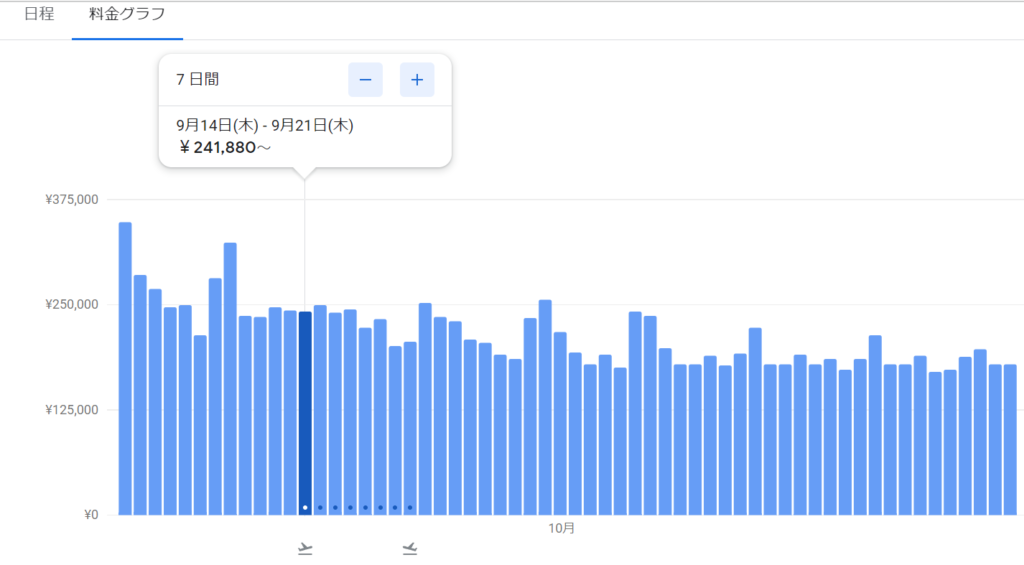 googleのフライト検索は、カレンダーやグラフ機能でいつ飛行機を取るとお得なのかわかりやすいです。